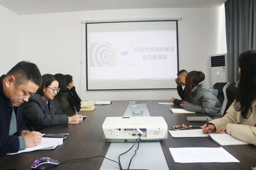 會上,業(yè)務(wù)部負(fù)責(zé)人從招標(biāo)形式、投標(biāo)流程、投標(biāo)文件組成及注意事項等四方面進(jìn)行詳細(xì)講解。加強(qiáng)員工對招投標(biāo)工作流程的了解,從而有效規(guī)避風(fēng)險、提高工作效率。