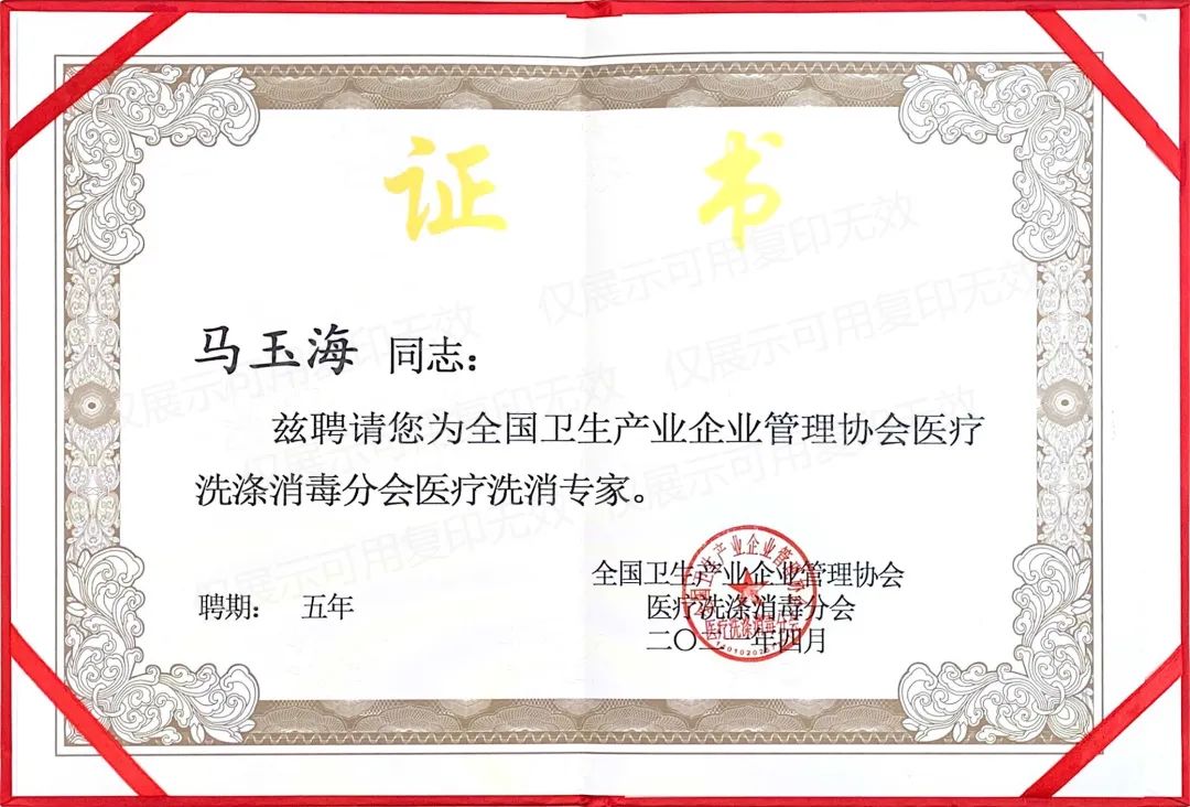 其中,在醫療洗滌消毒分會年會上,副會長黃仁瑞宣布全國衛生產業企業管理協會醫療洗滌消毒分會醫療洗消專家組正式成立,并公布了公布全體69位專家名單。日照國濟尚領醫院管理服務有限公司董事長馬玉海被協會聘為醫療洗滌消毒分會專家,聘期五年。