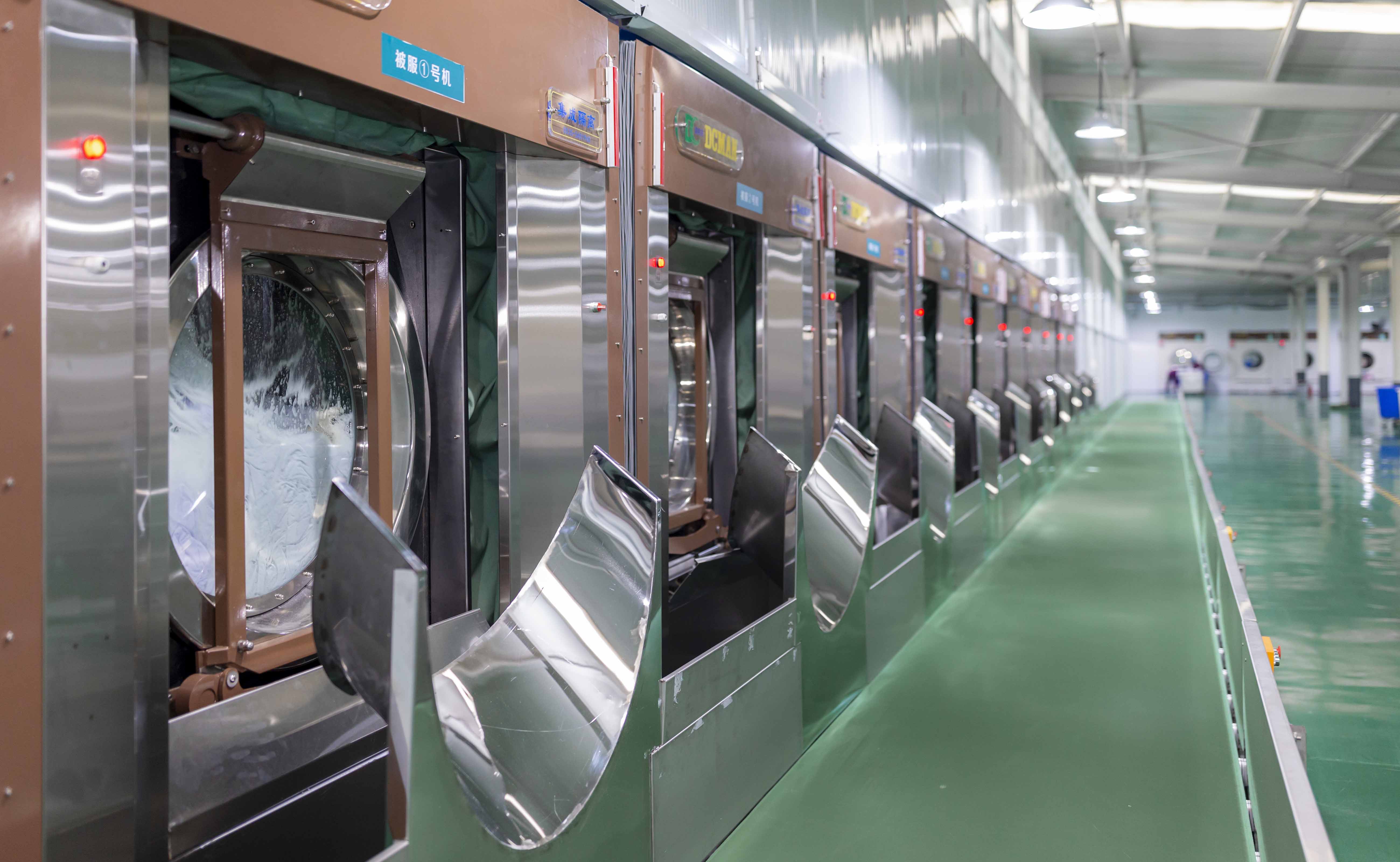 主要設(shè)備:現(xiàn)有智能化單機集成洗滌系統(tǒng)一套,烘干機10余臺,燙平機3臺,折疊機3臺,服裝熨燙機3臺,各類電動縫紉機、包縫機5臺及其它配套設(shè)施,其規(guī)模在同行業(yè)內(nèi)處于領(lǐng)先地位,完全實現(xiàn)了智能化。