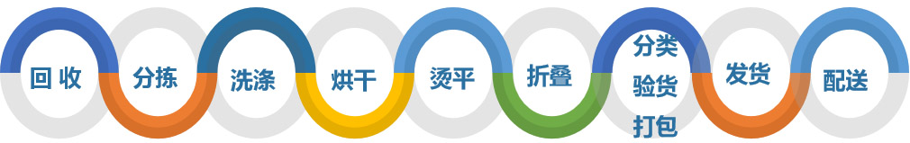 業(yè)務(wù)流程:嚴格按照國際專業(yè)的洗滌工藝及標準組織生產(chǎn),總結(jié)出了從回收、分揀、洗滌、烘干、整燙、折疊、分類驗貨、打包、發(fā)貨、配送工序的整體規(guī)范運作。